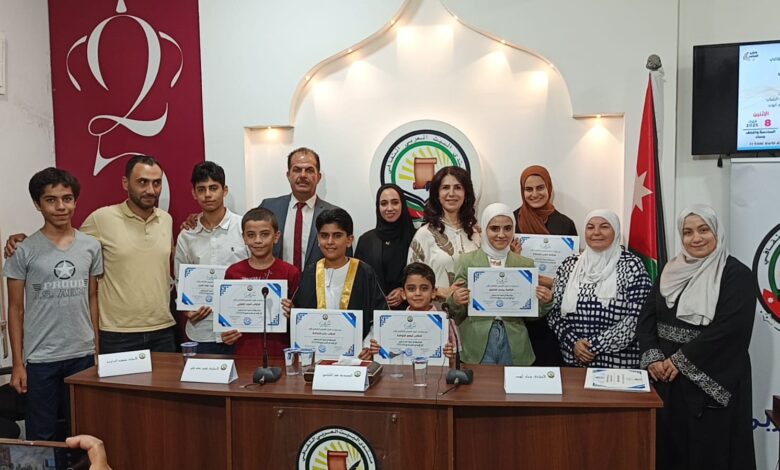 وفي ختام الامسية قامت المهندسه قمر النابلسي نائب رئيس منتدى البيت العربي وامينة السر ميرنا حتقوة ومدير مدرسة الشافعي رعد بني مصطفى بتقديم الشهادات التكريمية على المشاركين